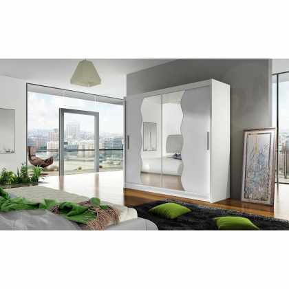 Posuvná skriňa so zrkadlom Parys I, Farby: biela / biela + zrkadlo, Osvetlenie: bez osvetlenia