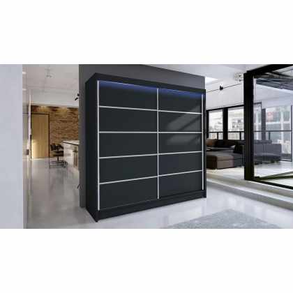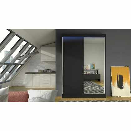 Šatníková skriňa s posuvnými dverami Bar I, Farby: čierna / čierna + zrkadlo, Osvetlenie: osvetlenie LED RGB – farebné