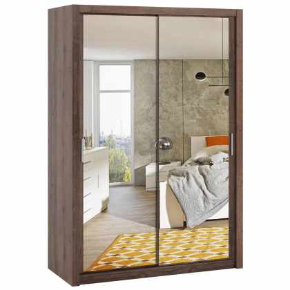 Šatníková skriňa s posuvnými dverami Bar II, Farby: sonoma / sonoma + zrkadlo, Osvetlenie: bez osvetlenia