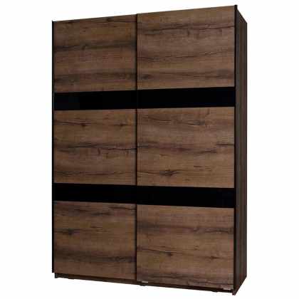 Skriňa Verdek SZ150 VD12, Farby: dub monastery / dub monastery + čierny lesk, Osvetlenie: bez osvetlenia, Systém tichého zatvárania: nie, Zrkadlo: nie