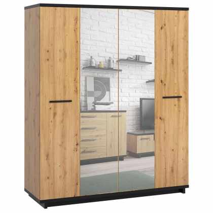 Šatníková skriňa SZ4D Mins MS10, Farby: dub artistan + dub artistan + matná čierna