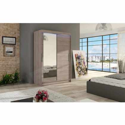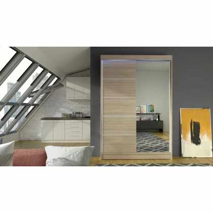 Skriňa Presto II, Farby: sonoma / zrkadlo, Osvetlenie: bez osvetlenia