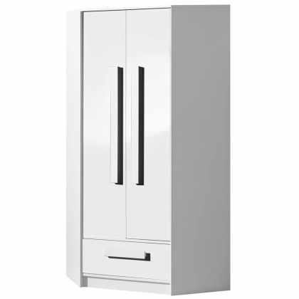 Rohová skriňa Raliv RL02, Farby: biela / biely lesk, úchtky : šedá