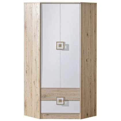 Rohová skriňa Niczi NI02, Farby: dub svetlý / biely + dub svetlý