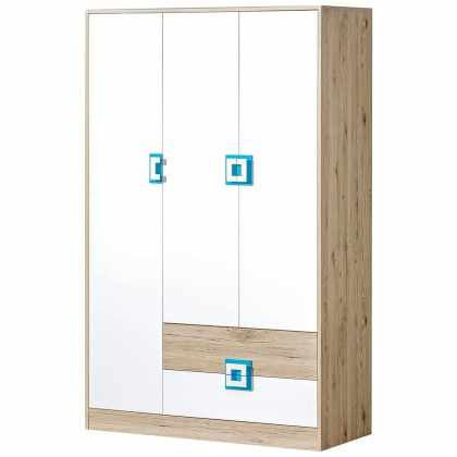 Skriňa 120 Niczi NI03, Farby: dub svetlý / biely + tyrkysový