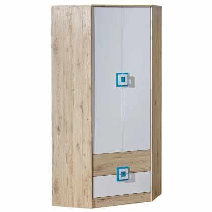 Rohová skriňa Niczi NI02, Farby: dub svetlý / biely + tyrkysový