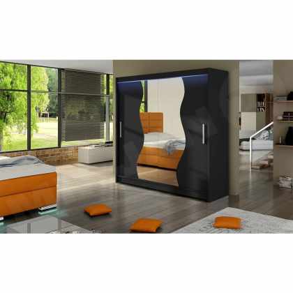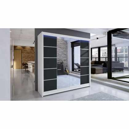 Posuvná skriňa Bar V, Farby: biela / čierna + zrkadlo, Osvetlenie: osvetlenie LED RGB – farebné