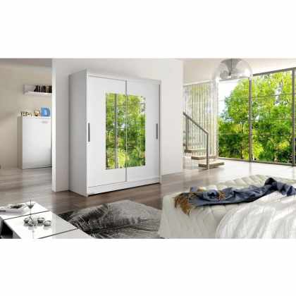 Šatníková skriňa s posuvnými dverami Presto III, Farby: biela / zrkadlo, Osvetlenie: bez osvetlenia