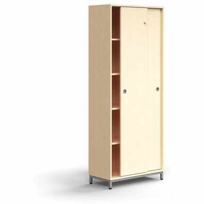 Skriňa s posuvnými dverami QBUS, 4 police, na nožičkách, s madlom, 2020x800x400 mm, strieborná, brez