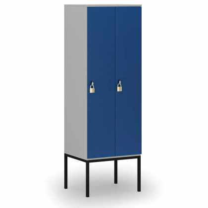 Drevená šatníková skrinka s podnožou, 2 oddiely, 1871 x 600 x 500 mm, otočný zámok, sivá / modrá