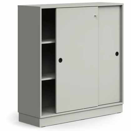 Skriňa s posuvnými dverami QBUS, 2 police, so soklom, s madlom, 1252x1200x400 mm, svetlošedá