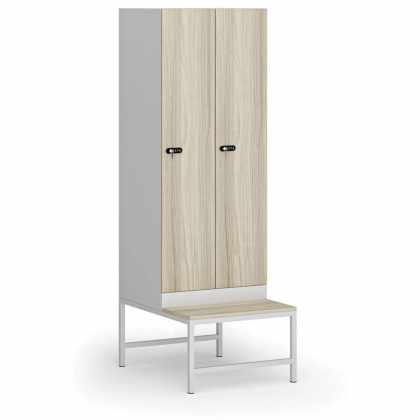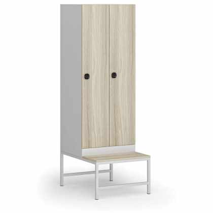 Šatníková skrinka s lavičkou, 2 oddiely, 1875 x 600 x 500/800 mm, kódový zámok, laminované dvere, dub prírodný