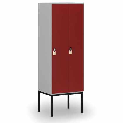Drevená šatníková skrinka s podnožou, 2 oddiely, 1871 x 600 x 500 mm, otočný zámok, sivá / červená