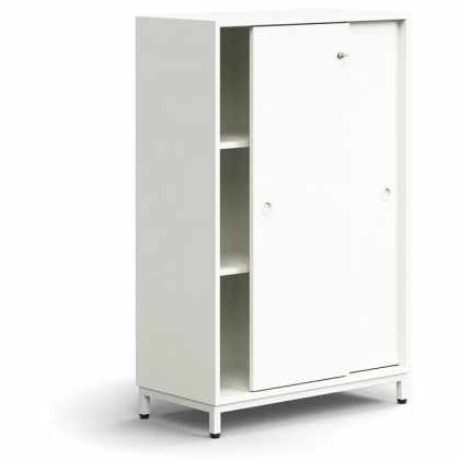 Skriňa s posuvnými dverami QBUS, 2 police, na nožičkách, s madlom, 1252x800x400 mm, biela