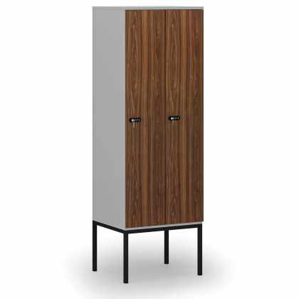 Drevená šatníková skrinka s podnožou, 2 oddiely, 1871 x 600 x 500 mm, mechanický kódový zámok, sivá/orech