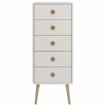 Biela komoda PRIMO s 5 zásuvkami