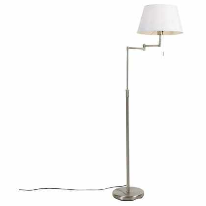 Stojacia lampa z ocele s bielym tienidlom a nastaviteľným ramenom – Ladas Deluxe