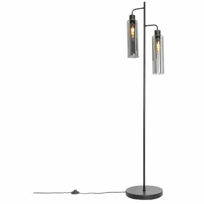 Moderná stojaca lampa čierna s dymovým sklom 2 svetlá – Stavelot