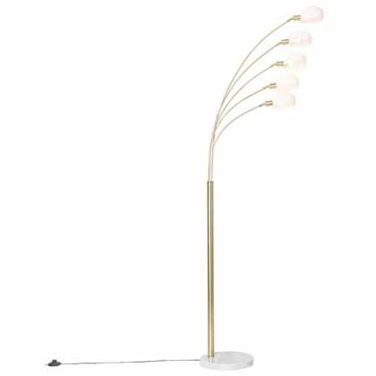 Dizajnové stojace svietidlo mosadz s opálovým sklom 5-svetlo – Sixties Marmo