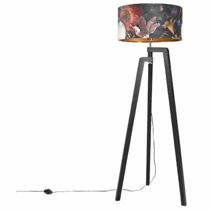 Stojací lampa statív čierna s tienidlom kvetinový vzor 50 cm – Puros