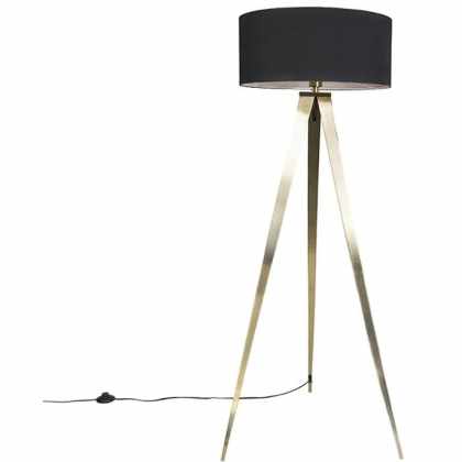 Moderná mosadzná stojaca lampa s čiernym tienidlom – Ilse