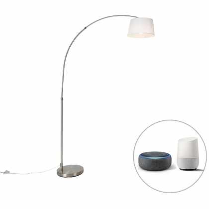 Inteligentná oceľová oblúková lampa s bielym látkovým tienidlom vrátane Wifi A60 – Arc Basic