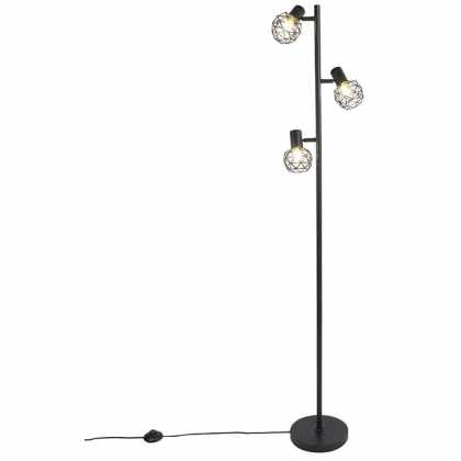 Dizajnová stojaca lampa čierna 3-svetlá – klietka