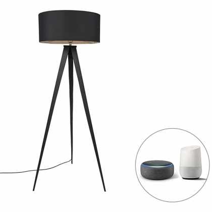 Inteligentná stojaca lampa čierna s čiernym tienidlom vrátane WiFi A60 – Ilse