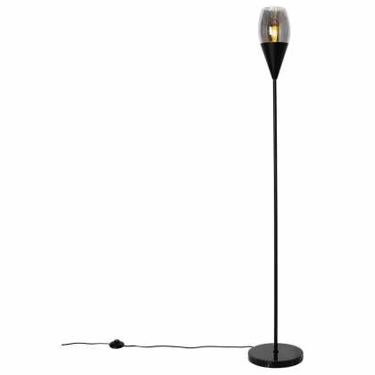 Moderná stojaca lampa čierna s dymovým sklom – Drop