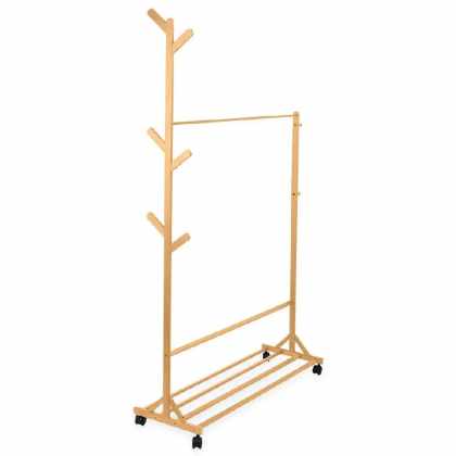 Compactor Hector 2 němý sluha na šaty, dvojitý na kolečkách, světlé dřevo