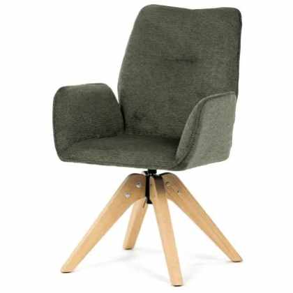 Stolička jedálenská s lakťovými opierkami, zelená vodeodpudivá látka, dubové nohy, otočná 360° DCH-C2148 GRN2