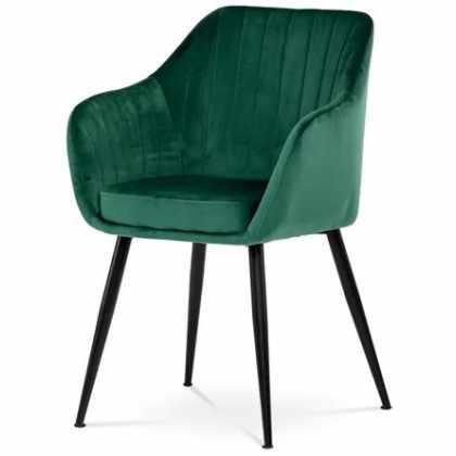 Jedálenská stolička, poťah zelená zamatová látka, kovové nohy, čierny matný lak PIKA GRN4
