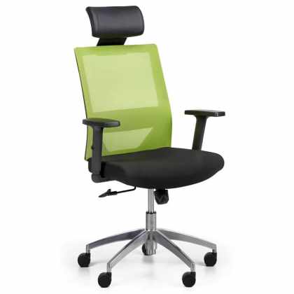 Kancelárska stolička so sieťovaným operadlom WOLF II, nastaviteľné podrúčky, hliníkový kríž, zelená