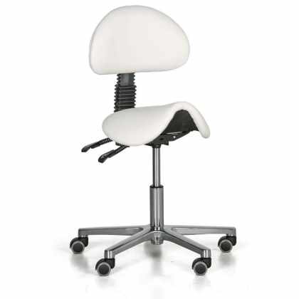Pracovná stolička SHAWNA, sedák v tvare sedla, mäkké kolieska, biela