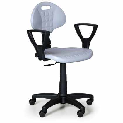 Pracovná stolička PUR s podpierkami rúk, permanentný kontakt, pre mäkké podlahy, sivá
