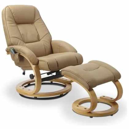 Masážne kreslo Matador s podnožkou, béžová / prírodné drevo