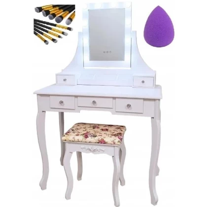 Toaletný stolík Barocco biely + DARČEK hubka na make up