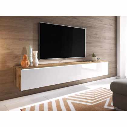 TV stolík/skrinka Dilune 180 (dub votan + biely lesk) (osvetlenie led biele). Vlastná spoľahlivá doprava až k Vám domov. 1053810