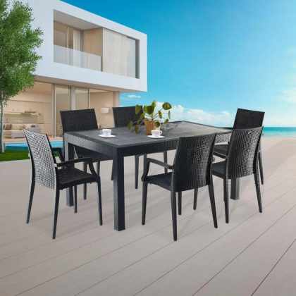 InternetovaZahrada Záhradná ratanová zostava Berlin 1+6 čierna – WPC