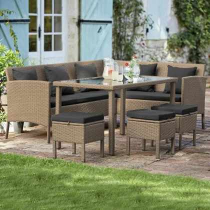 Rohová ratanová záhradná súprava ALTEA – Hnedá