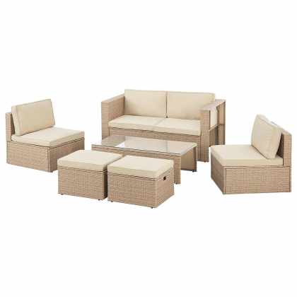 Deokork Ratanová variabilná zostava SEVILLA 1+2+1 pre 5 osôb (béžová)