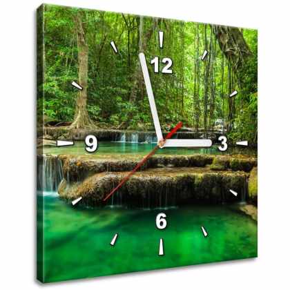 Gario Obraz s hodinami Vodopád Erawan v Thajsku Rozmery: 30 x 30 cm