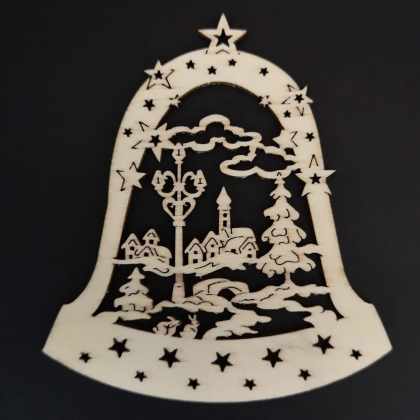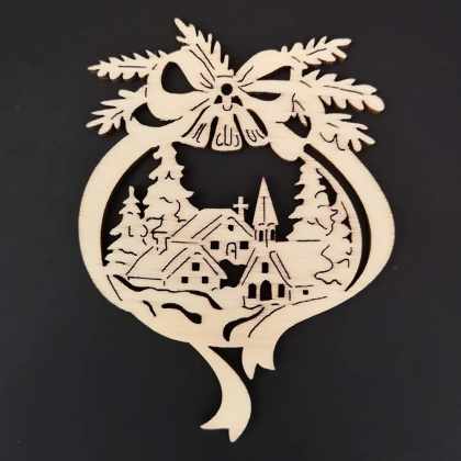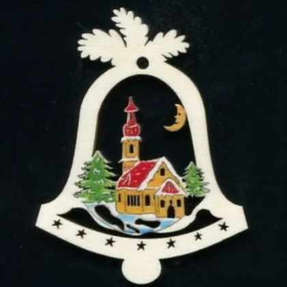 AMADEA Drevená ozdoba zvonček s kostolom 9 cm