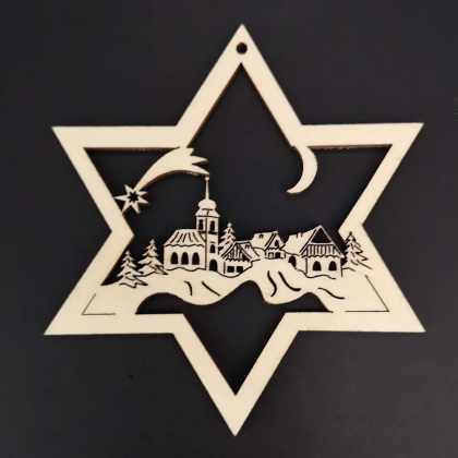 AMADEA Drevená ozdoba hviezda s dedinkou 8 cm