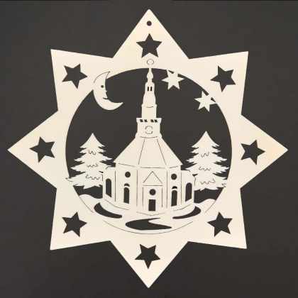 AMADEA Drevená ozdoba hviezda s kostolom 18 cm