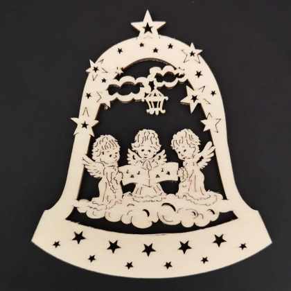 AMADEA Drevená ozdoba zvon s anjelmi 9 cm