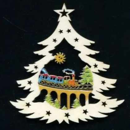AMADEA Drevená ozdoba farebná stromček s vláčikom 6 cm