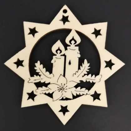 AMADEA Drevená ozdoba hviezda so sviečkami 8 cm