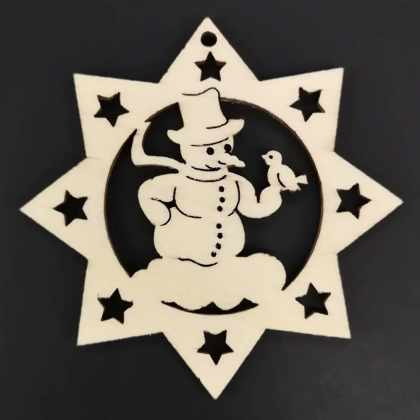AMADEA Drevená ozdoba hviezda so snehuliakom 8 cm