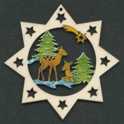 AMADEA Drevená ozdoba hviezda so srnkami 8 cm